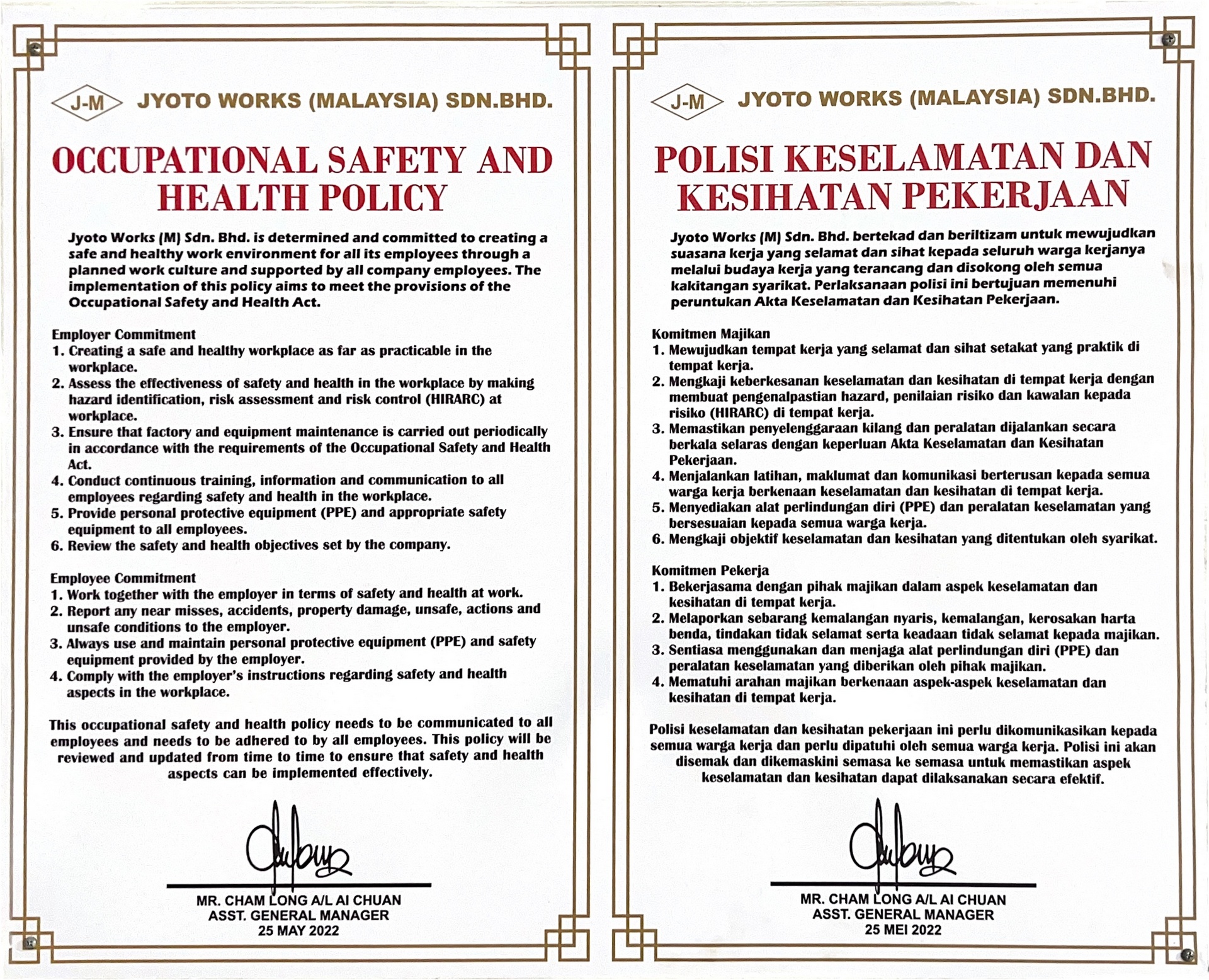 Application Form within 5 working days and submit to HR within 2 working days.